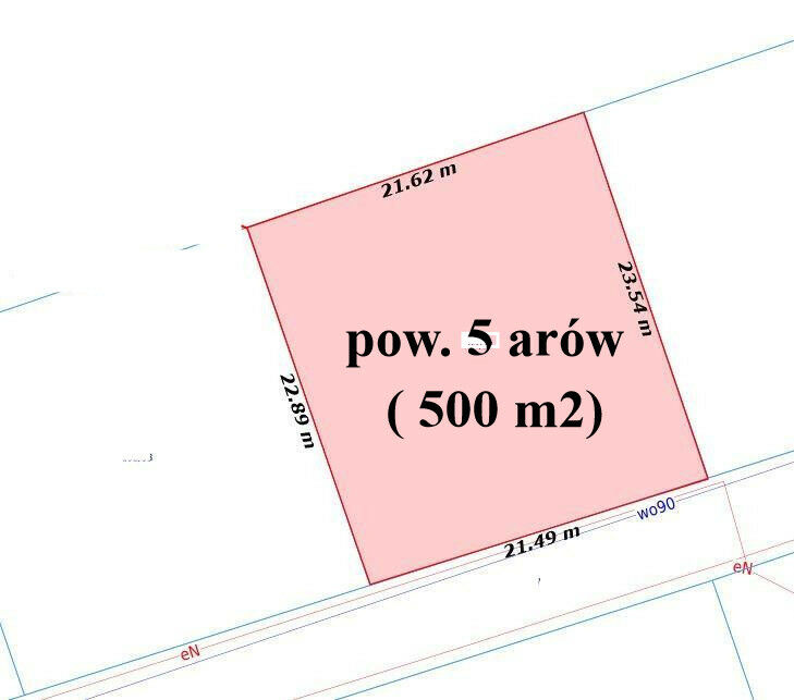 Teren o powierzchni 500 m2, płaski, równy, zbliżony do kwadratu. Na